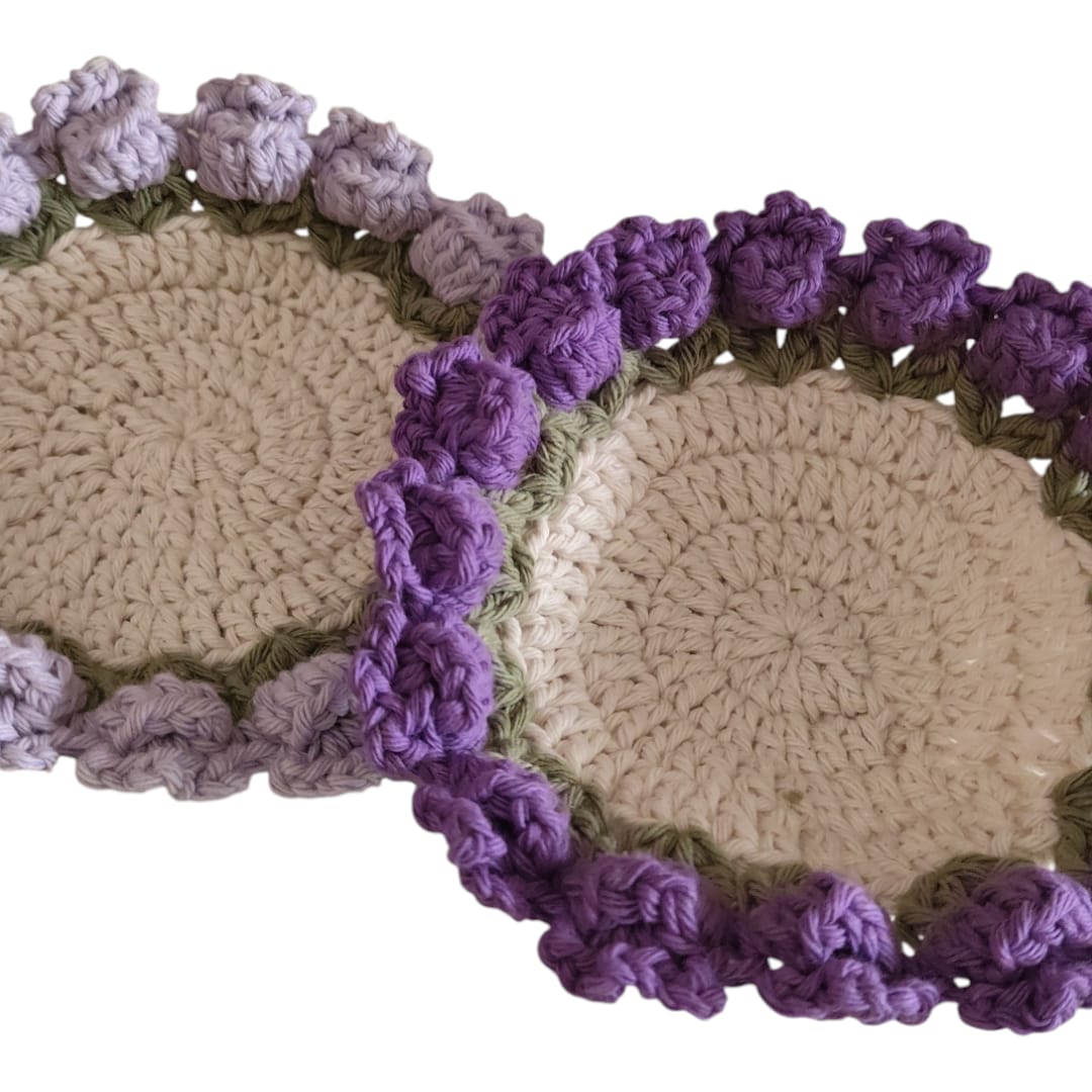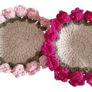 Este delicado set de posavasos está tejido completamente a mano, pensado para sumar un detalle artesanal, cálido y original a tu mesa. Cada pieza está realizada en crochet con mucho cuidado, haciendo que cada set sea único.